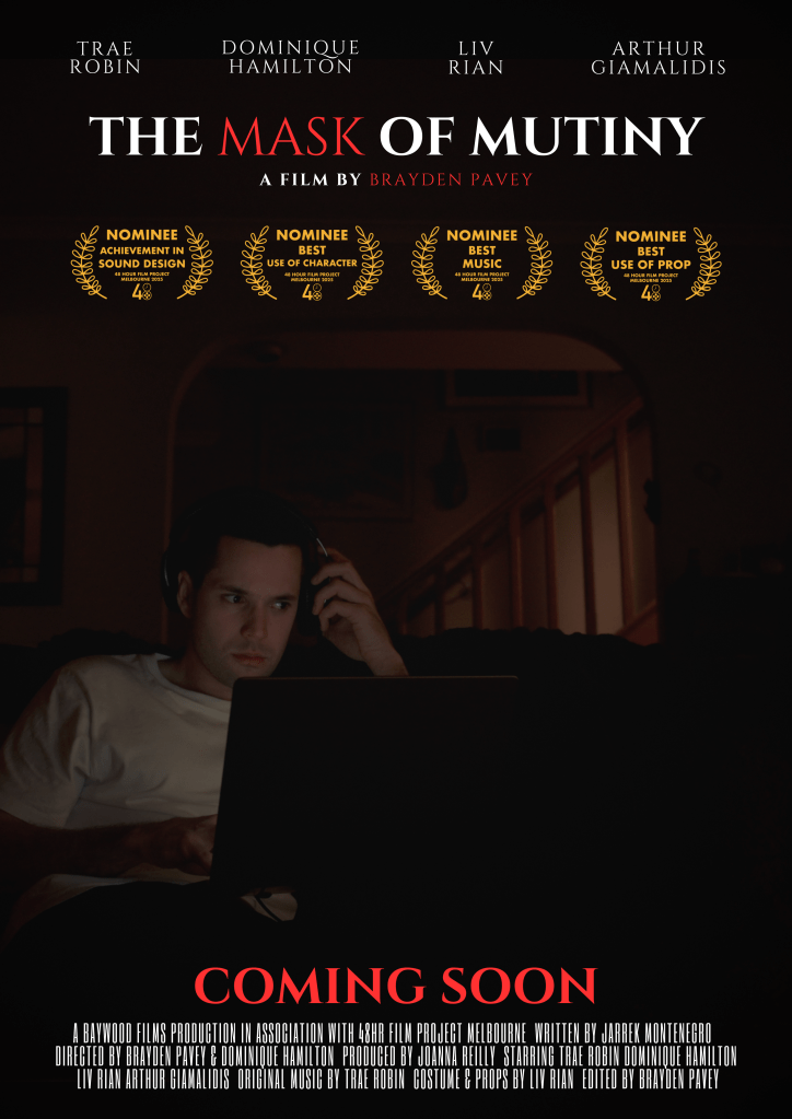 The Mask of Mutiny (2025), was screened at the Melbourne 48hr film festival and received four nominations and one win for Best Use of Prop, Best Use of Character, Best Music, and Achievement in Sound Design.